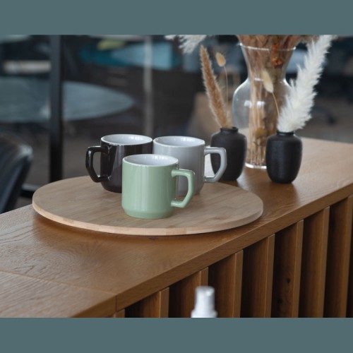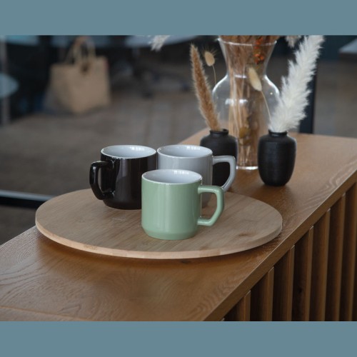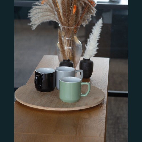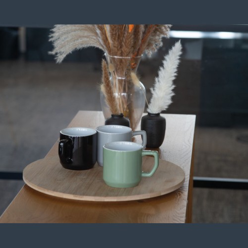 330 ml űrtartalmú modern kerámia bögre, harmónikus színekben. Egyesével dobozba csomagolva szállítjuk.