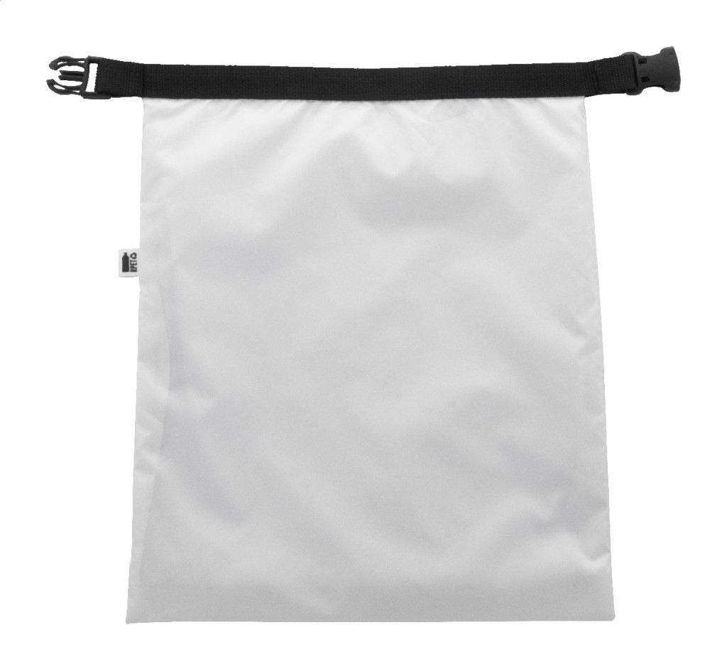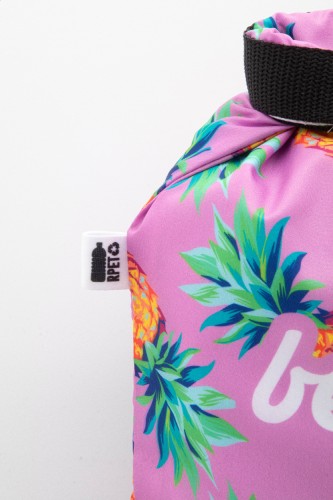 Egyedi gyártású, nagyméretű, újrafelhasználható, rolltop kenyértartó táska 190T RPET poliészterből, tartós vízálló béléssel. Teljes felületén szublimációs grafikával és megkölböztető RPET címkével. Minimális rendelési mennyiség: 25 db.