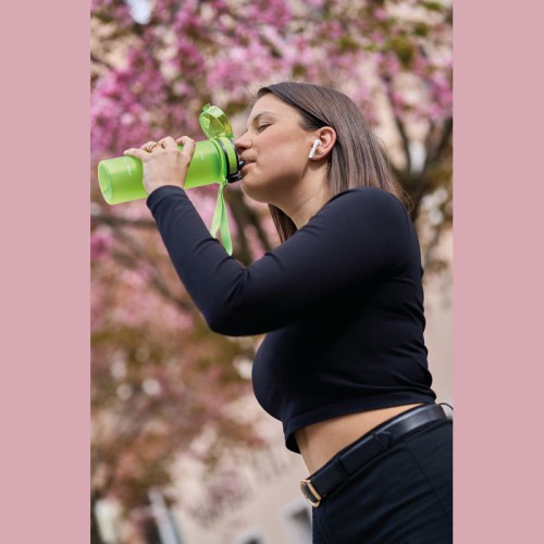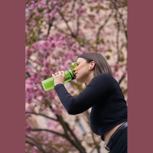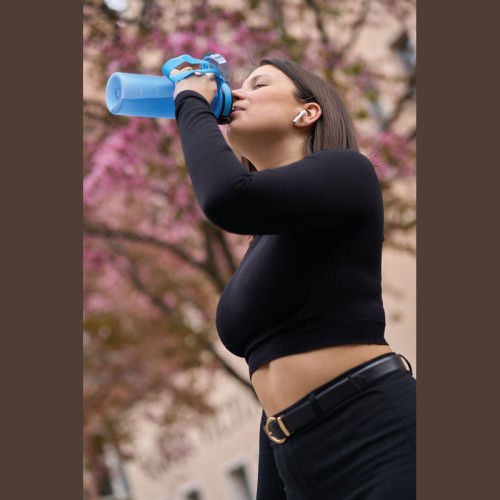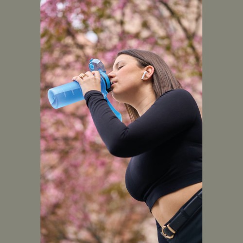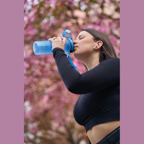 Tritánból készült szivárgásmentes kulacs mérőskálával és hordszíjjal. A robusztus BPA-mentes anyagnak köszönhetően a palack különösen tartós társ lehet.