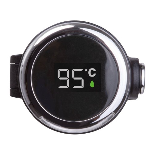 Rozsdamentes acélból készült vákuumos duplafalú ivópalack, amely hőmérséklet-kijelzővel rendelkezik a kupakon, valamint biztonsági zárral van ellátva. A maximális kijelzett hőmérséklet 99 °C.