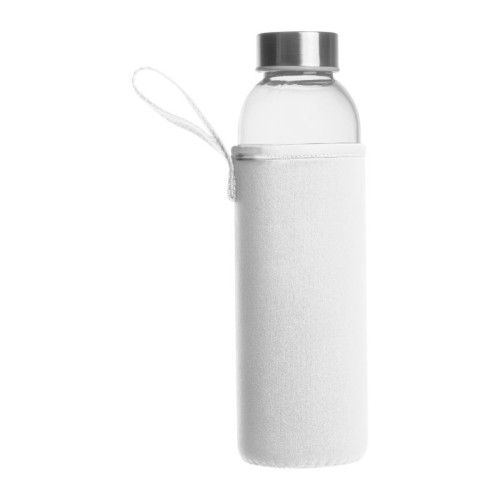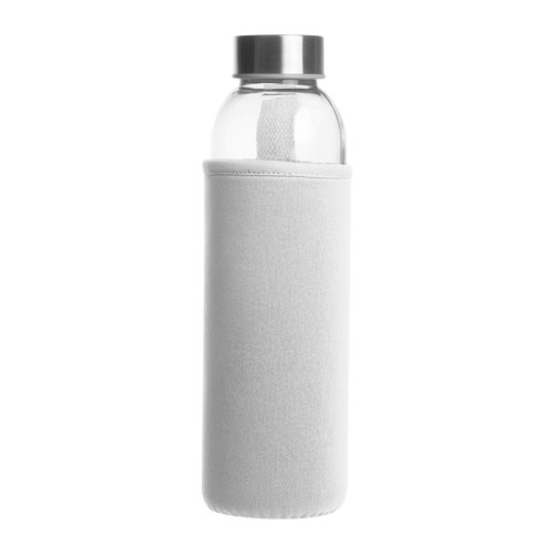 Üveg kulacs neoprén tokban hordozópánttal és szivárgásmentes fém kupakkal. Űrtartalom 500 ml.