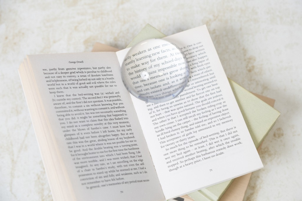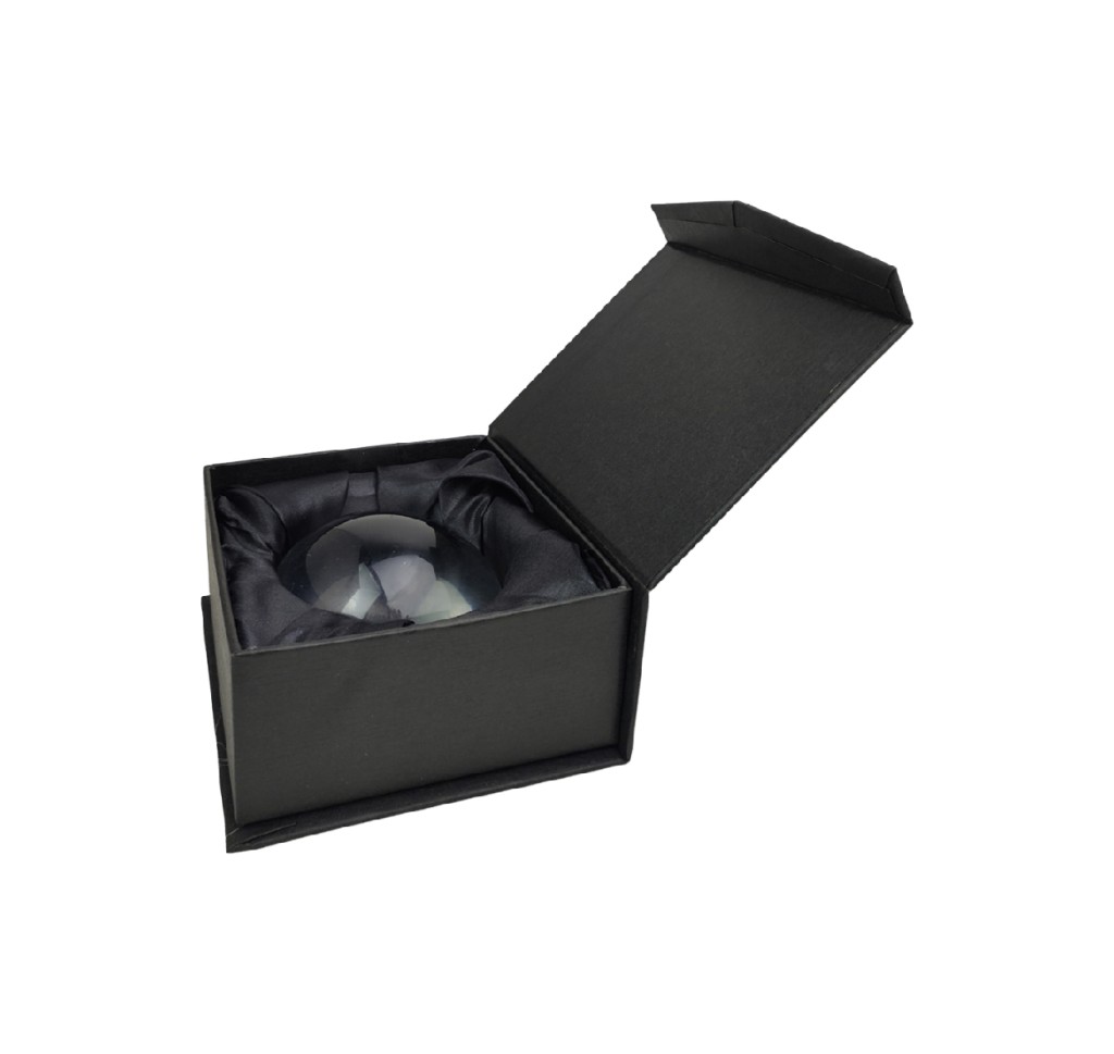 Üveg papírnehezék és nagyító. Fekete papír ajándékdobozban, bársony berakással és mágneses zárral.
