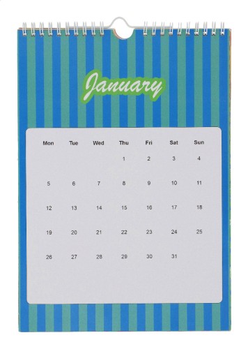 Egyedi gyártású, A4 méretű, spirál falinaptár full-colour grafikával és akasztóval. 6 kétoldalas havi lappal és egy borítóval. Az ár tartalmazza az összes oldal digitális nyomtatását. Minimális rendelési mennyiség: 100 db.