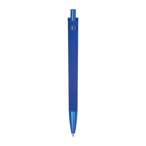 Ez a kiváló minőségű gumírozott golyóstoll kék tintával rendelkezik, és újrahasznosított ABS műanyagból készült, mely masszív szerkezetével tűnik ki. A gumírozott felület kényelmes fogást biztosít, míg a tollhegy és a nyomógomb elegáns, finomított UV-bevonattal van ellátva.