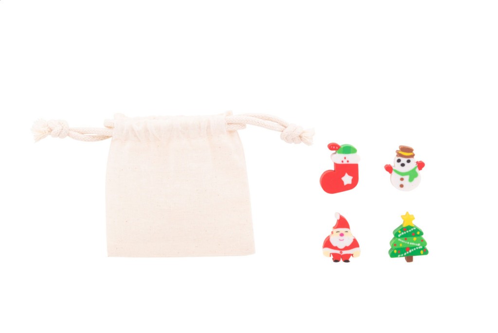 4 db-os radír szett karácsonyi kivitelben, pamut tasakban.