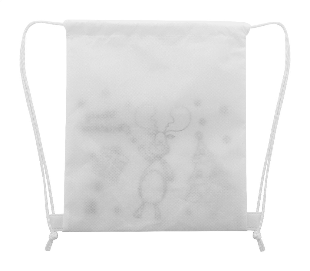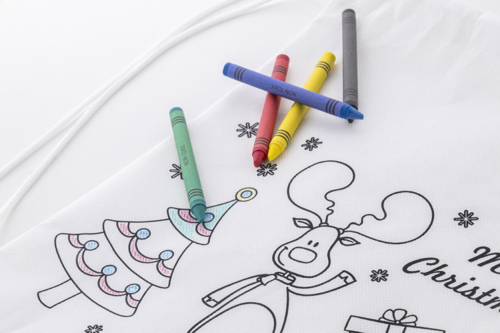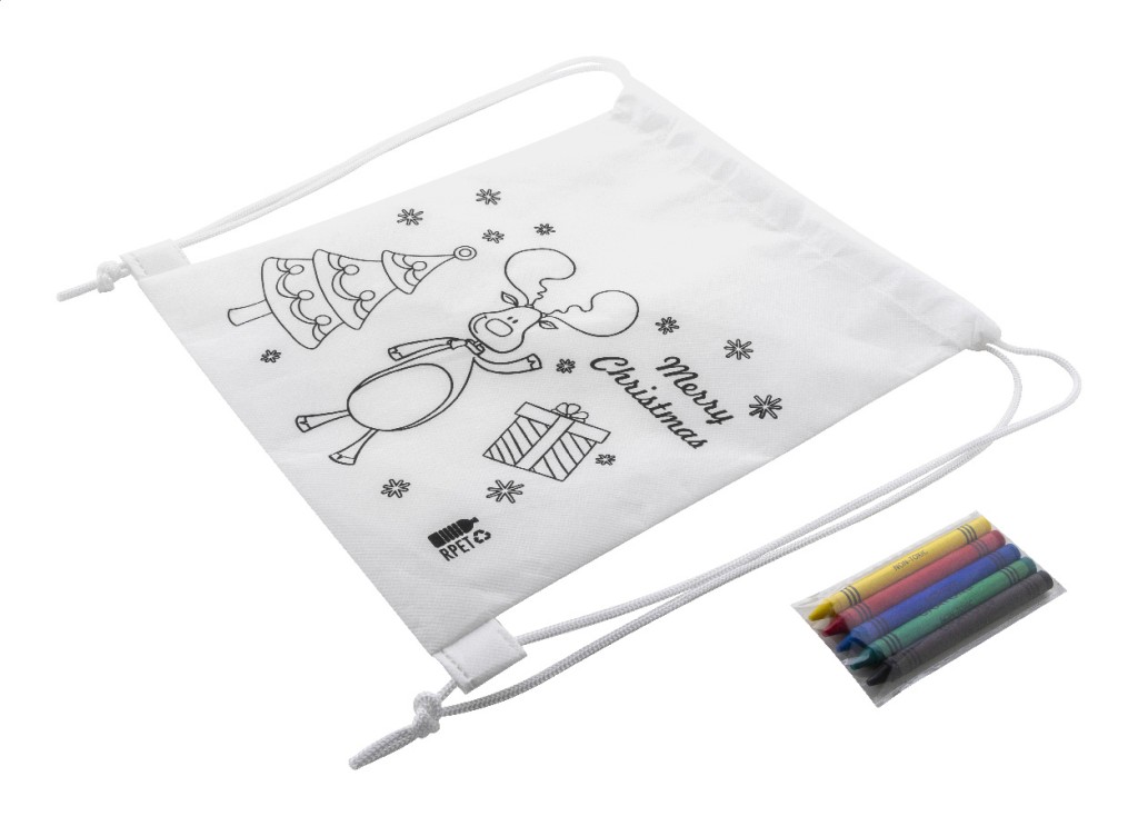 Karácsonyi színezhető, RPET non-woven anyagból készült hátizsák 5 db zsírkrétával.