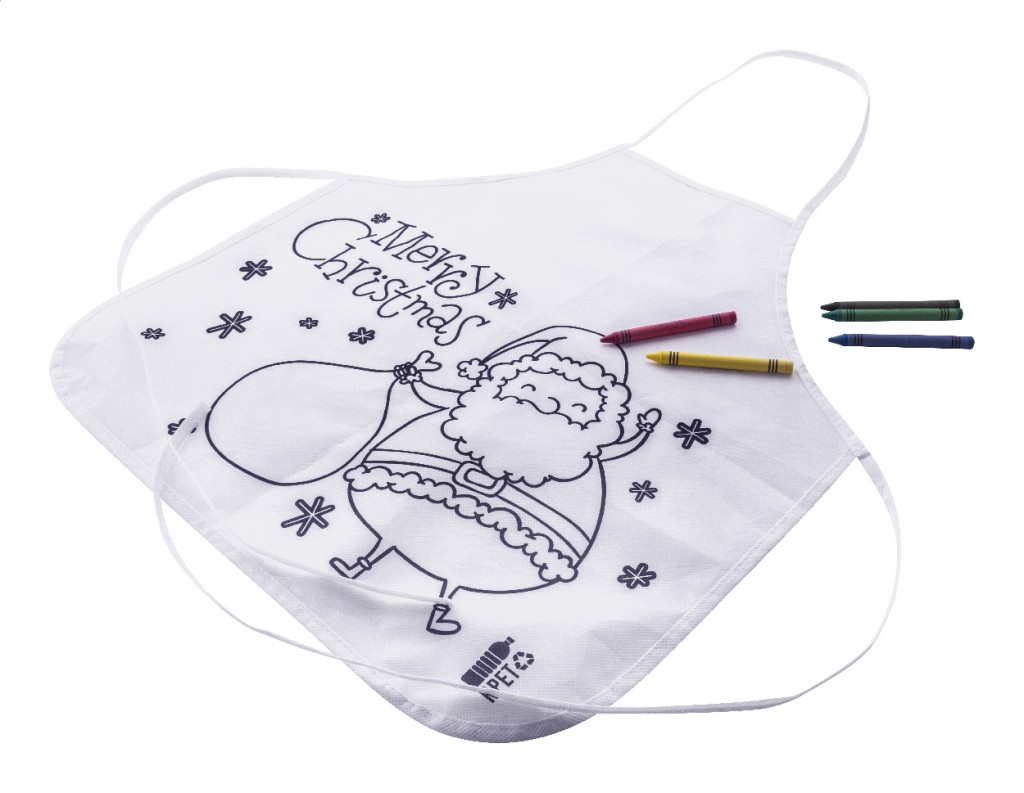 Karácsonyi színezhető kötény gyerekeknek RPET non-woven anyagból, 5 db zsírkrétával.