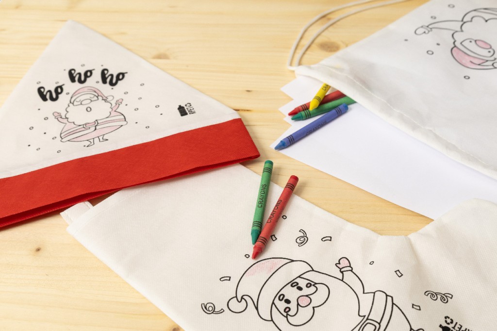 Karácsonyi színezhető zokni RPET non-woven anyagból, 5 db zsírkrétával.