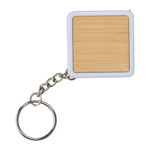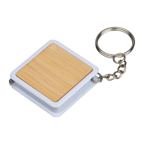 Kulcstartós mérőszalag bambusz berakással, mérési hossz: 1 m. Stílusos eszköz a pontos mérésekhez.