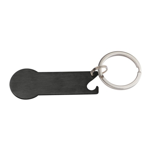 Rozsdamentes acélból készült bevásárlókocsi-érme kulcstartó, praktikus üvegnyitó funkcióval.