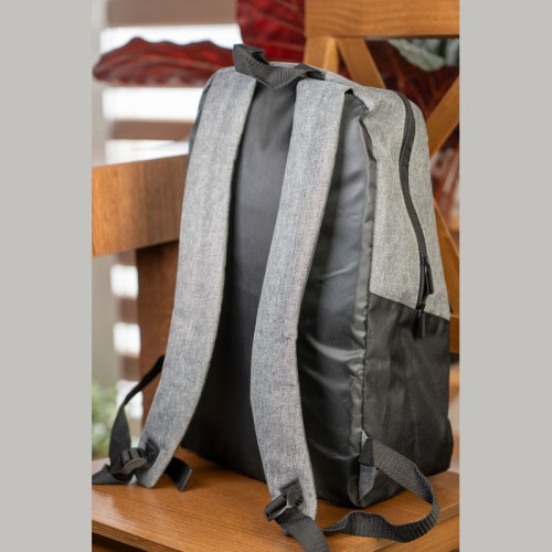 Elegáns 600D poliészter hátizsák nagy cipzáras első rekesszel, belső rekesszel, párnázott hátrésszel és párnázott állítható vállpántokkal.