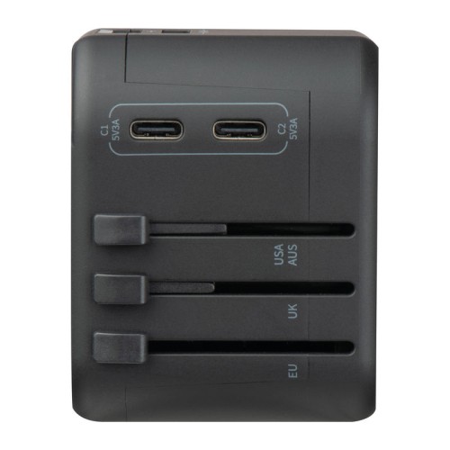 Utazó adapter tasakban 2 USB-A és 2 USB-C porttal. Adapterünk használható az EU-ban, az Egyesült Királyságban és az USA-ban. Maximális kimeneti teljesítmény: 3400 mAh. Kompakt és sokoldalú elektronikus eszközök, mely világszerte használható.