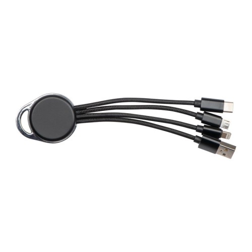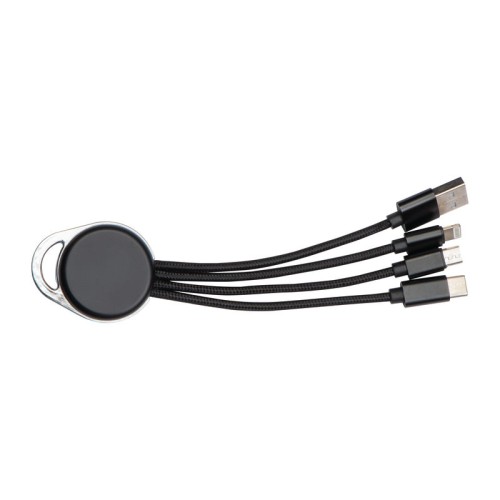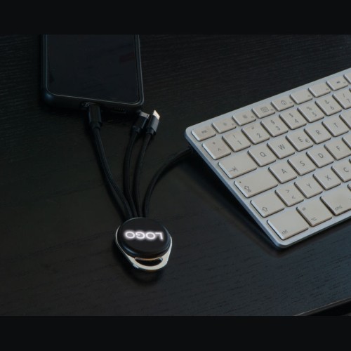 Világítós töltő USB kábel adapter USB-A, USB-C, Micro-USB és Lightning csatlakozókkal. Az adapter képes az egyedi logót megvilágítani gravírozás után.