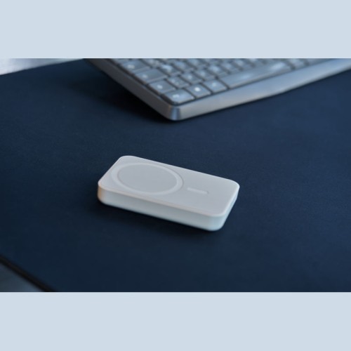 Műanyagból készült MagSafe vezeték nélküli töltős power bank, 5 000 mAh-s kapacitással és gumírozott felülettel, amely rendkívül kényelmes tapintást biztosít. USB-C porttal rendelkezik a töltéshez (bemenet és kimenet 10W, vezeték nélküli kimenet 5W). Kompatibilis az iPhone 12 és újabb modellekkel, valamint az Androidos készülékekkel, amelyek támogatják a MagSafe töltési funkciót.
